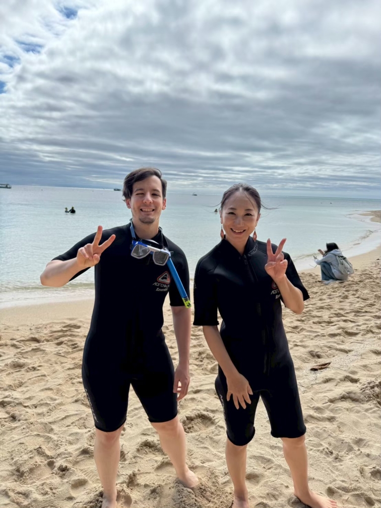 大きなsea turtleや、Angel fishや、名前はわからないけどすごく長い魚や、100匹くらいの白い魚の群れや、本当にたくさん見れました。