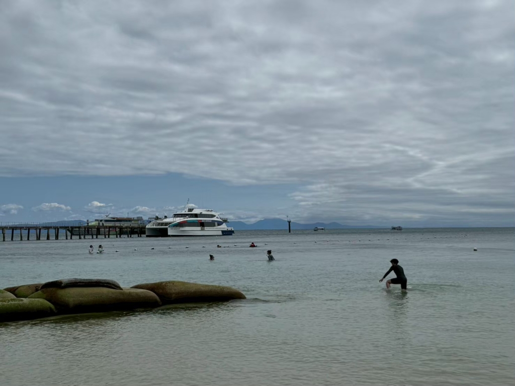 風が強くかなり船が揺れましたが、なんとか無事に島に上陸。