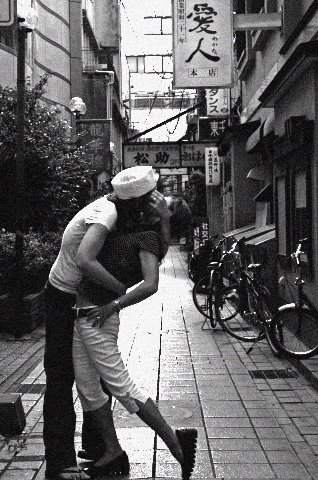 これは、Victory Over Japan Day (戦争で日本に勝った日)の、みんな歓喜にあふれる、アメリカでは知らない人がいないという写真だそうである。